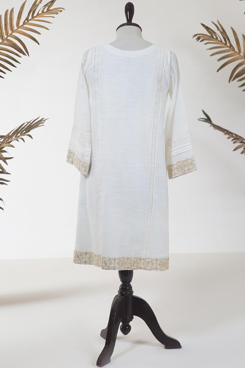 This one-piece design is rendered on an off-white base with sublime embroidery which makes it a perfect style statement for an intimate event.