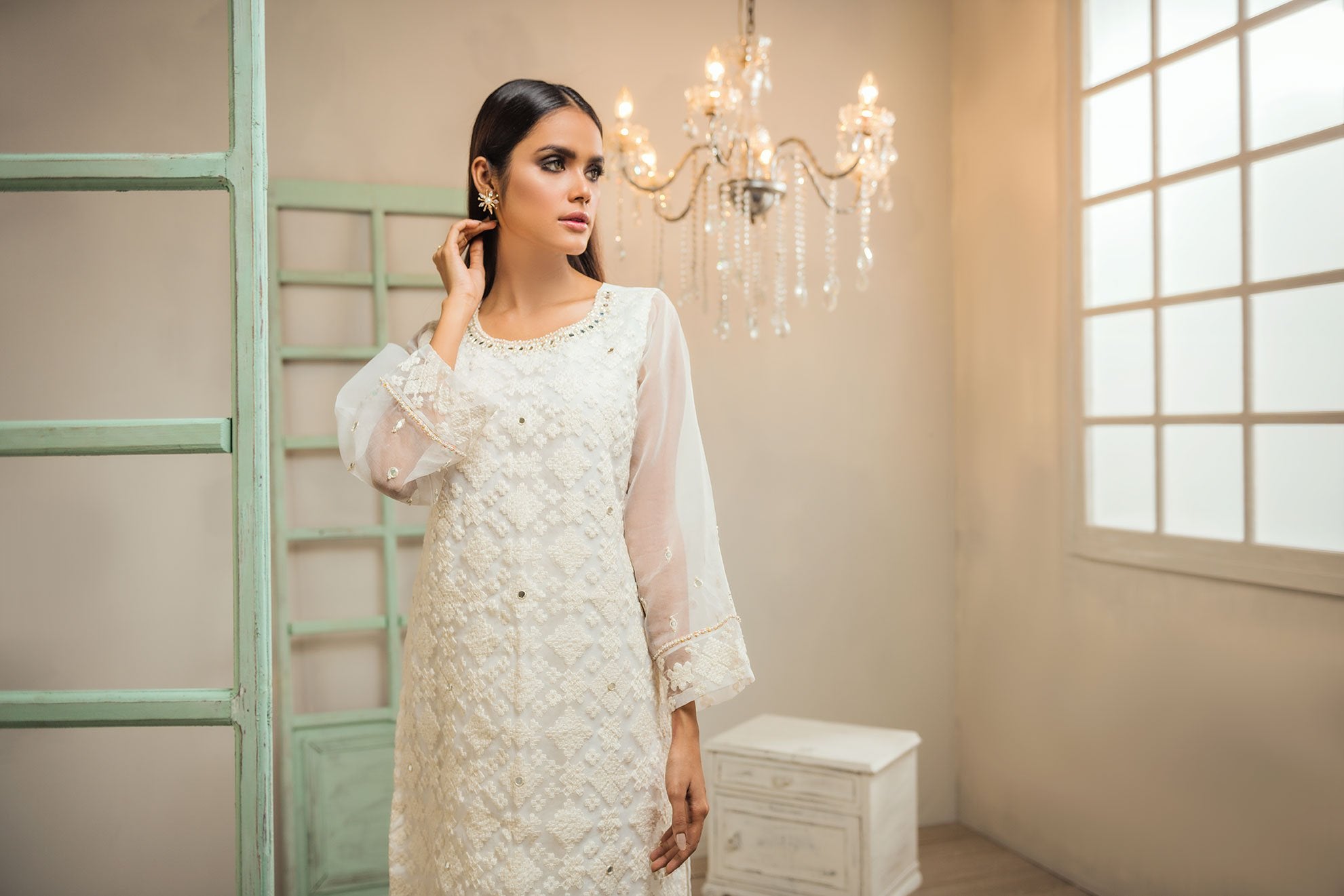 Crafted on Organza fabric this white embroidered kurta from Dhanak is a perfect pick for this season festivities