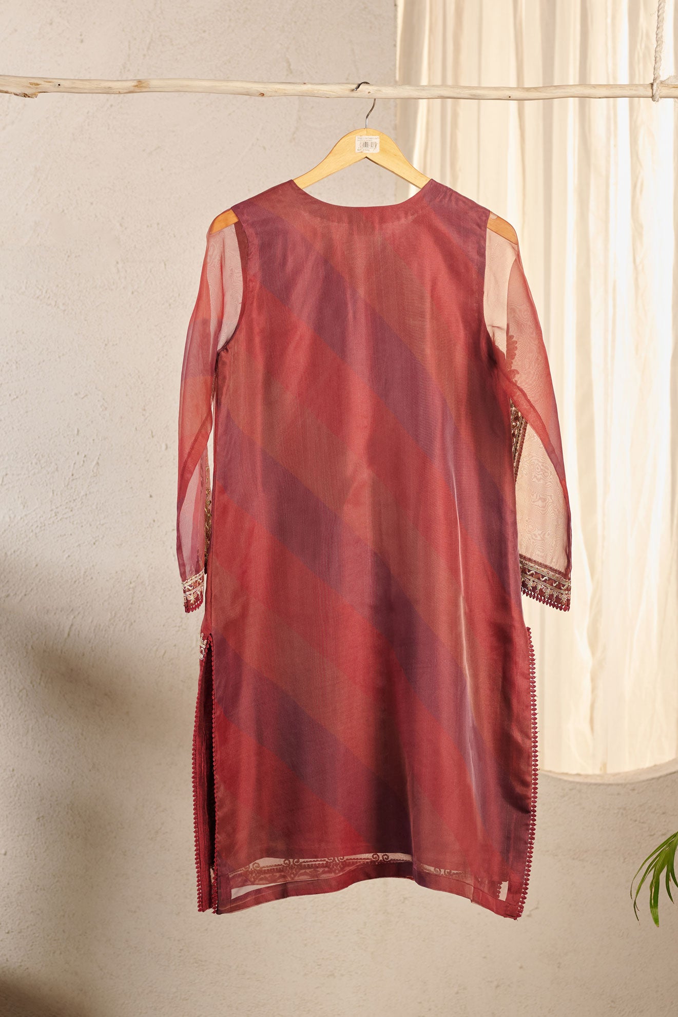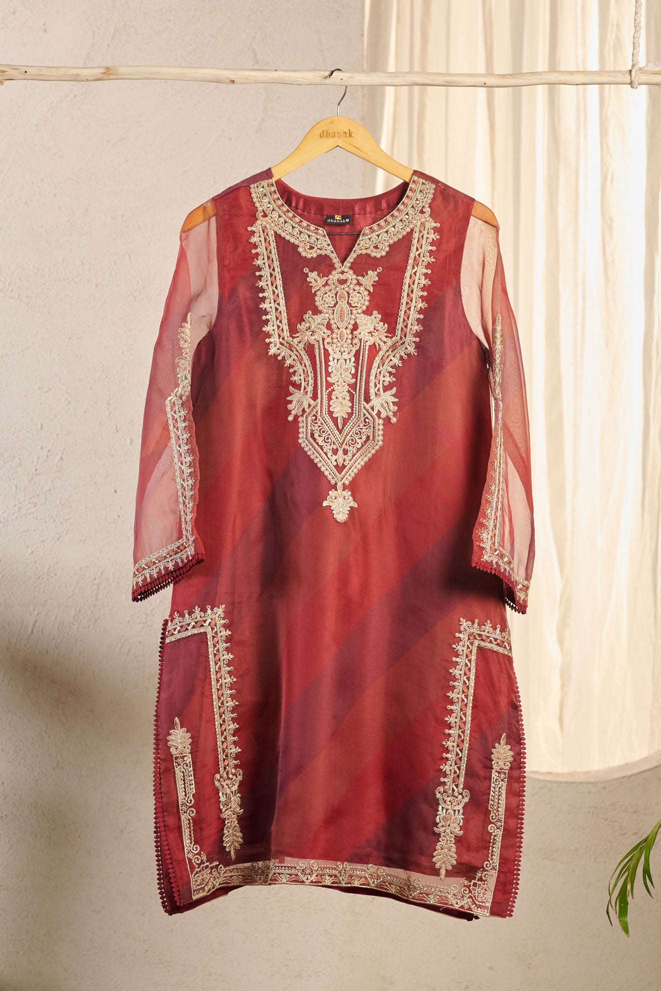 Organza kurta accented with opulent embroidery that exudes elegance. Pair this kurta with Dhanak's ethnic bottom and dupatta to complete the look.