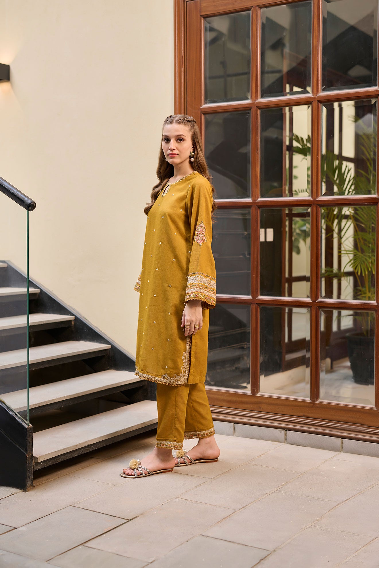 Dhanak's winter capsule collection introduces a vibrant two-piece ensemble. The elegantly embroidered kurta adds a touch of grace and sophistication to the outfit. Paired seamlessly with matching trousers, this ensemble is a perfect blend of bold color and intricate detailing. Ideal for winter celebrations or special events, it radiates a refreshing charm, making it a standout choice from Dhanak's exclusive collection. Embrace the season with style and vibrancy in this captivating lime green ensemble.