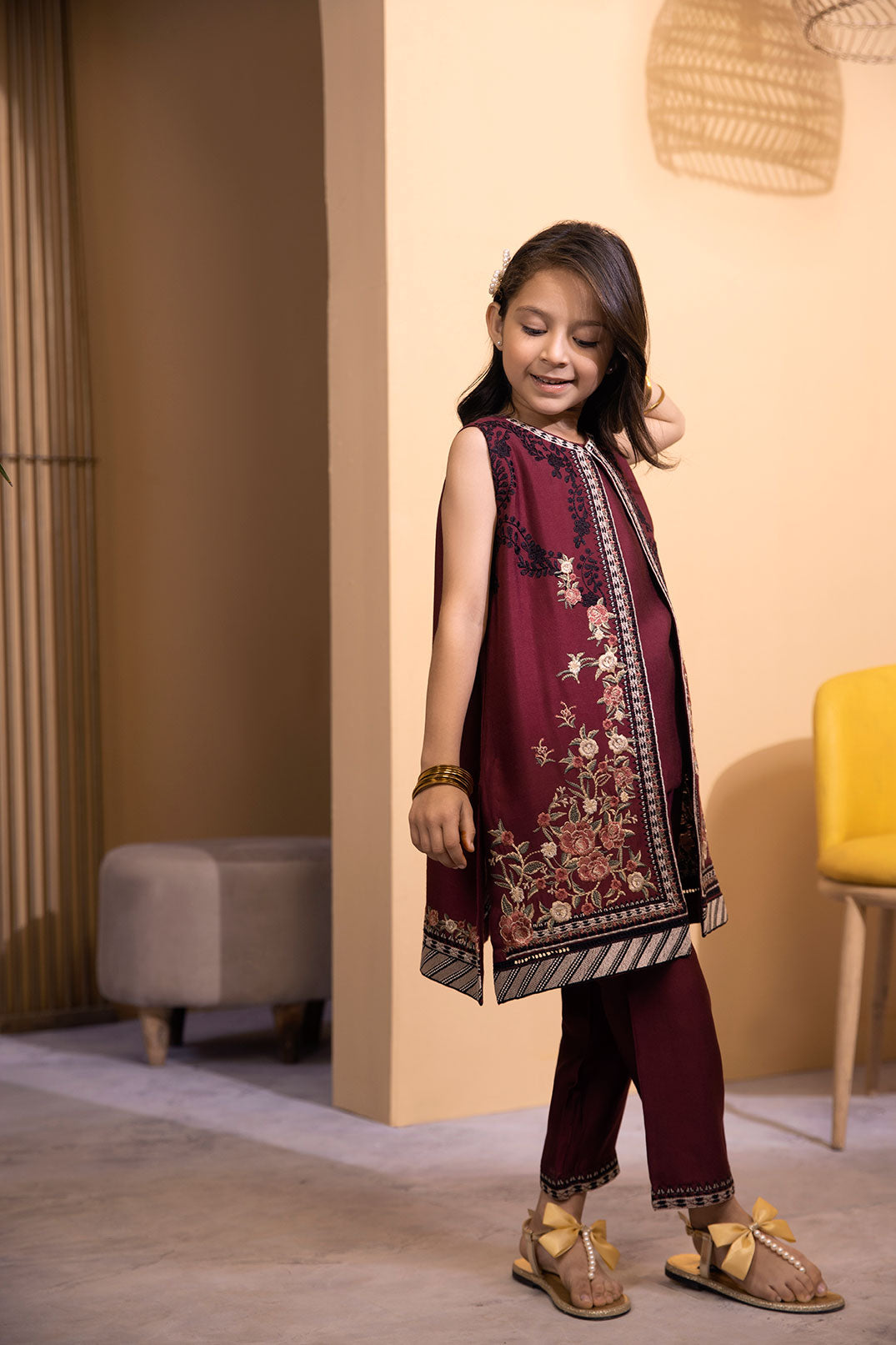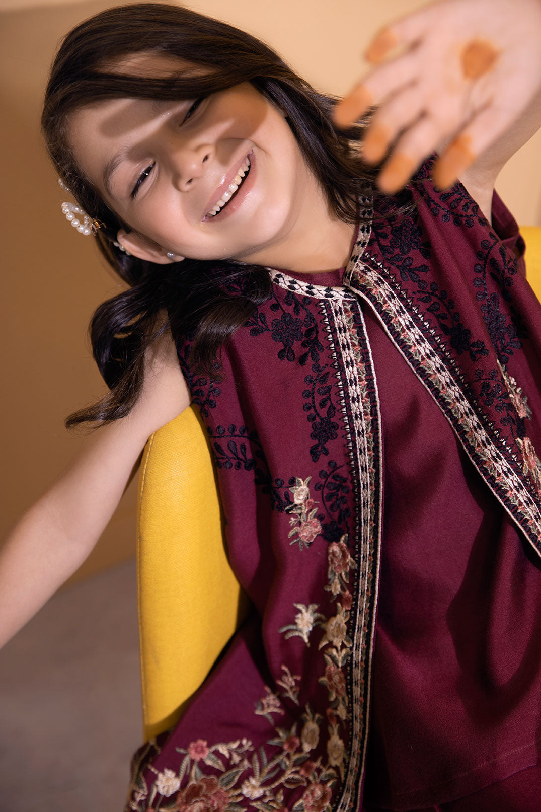 Get ready to twirl into Eid festivities with this Maroon Embroidered Two-Piece from our Mommy and Me Collection! Perfect for your little fashionista, this set features intricate embroidery details on a modern silhouette that sets your little one style apart.