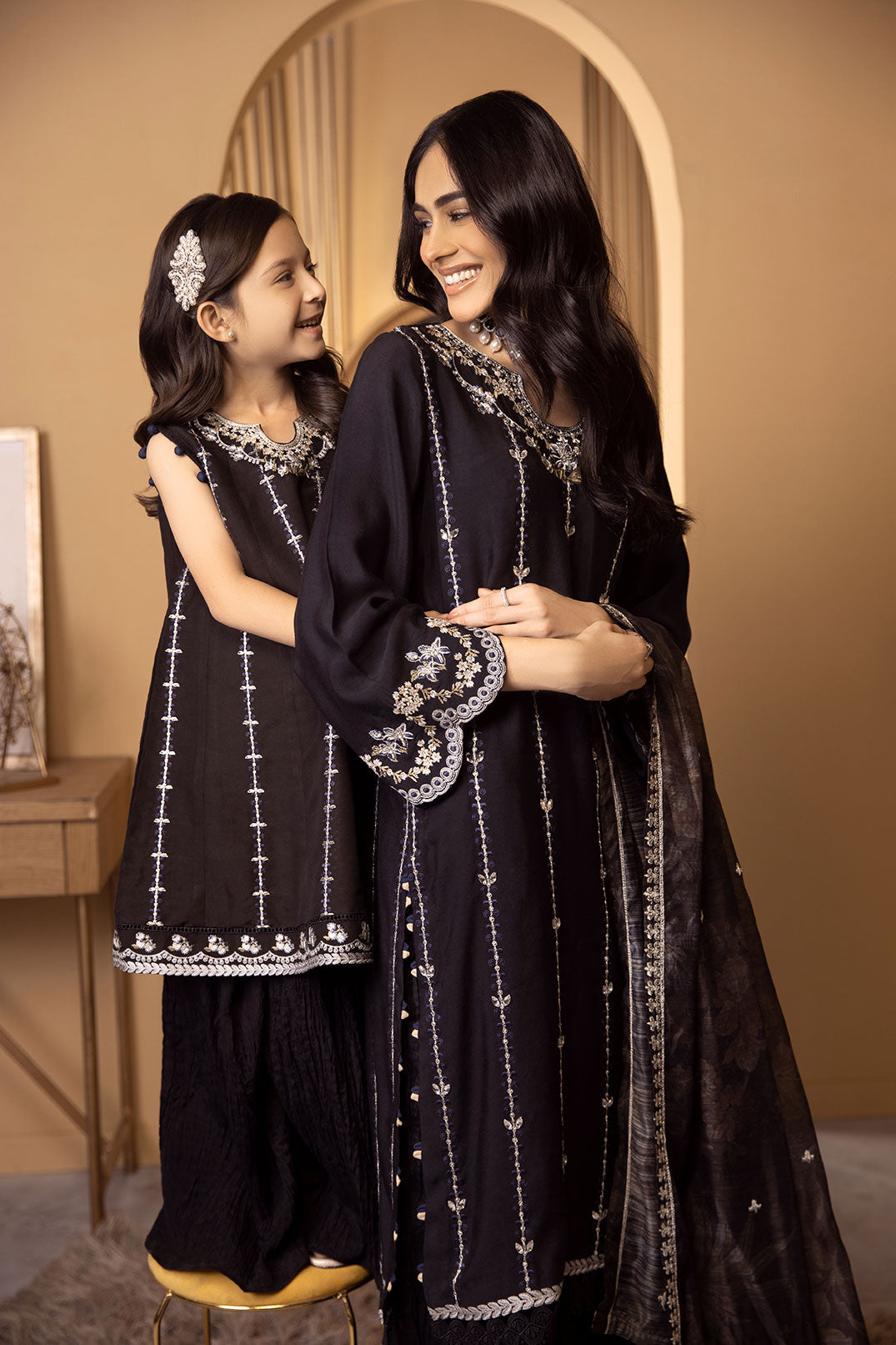 Celebrate Eid in style with this Black Embroidered Two-Piece Dress from our Mommy and Me Collection! Designed with exquisite embroidery and a trendy silhouette, this dress is perfect for your little fashionista. Coordinate with your mini-me and make memories that will last a lifetime!