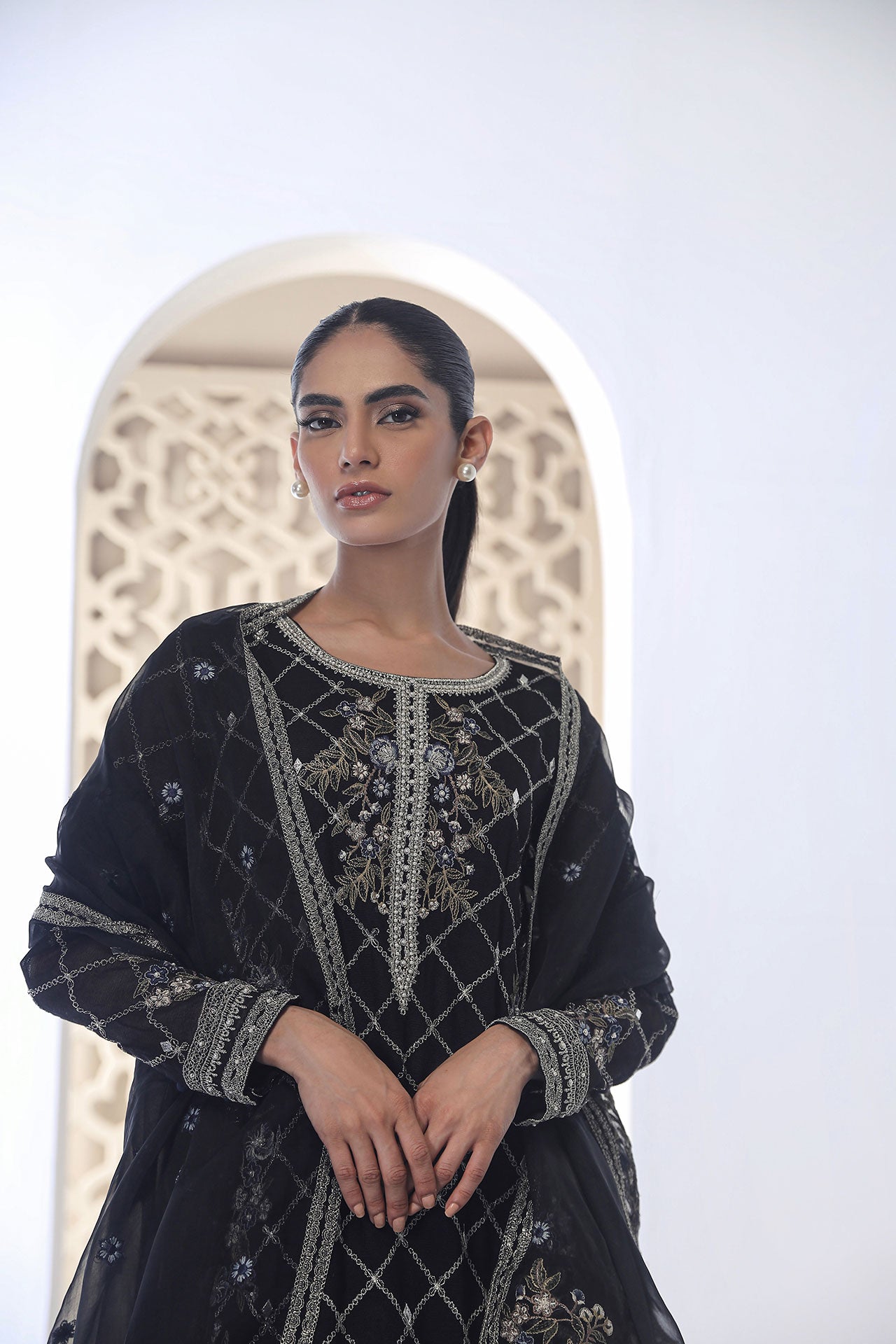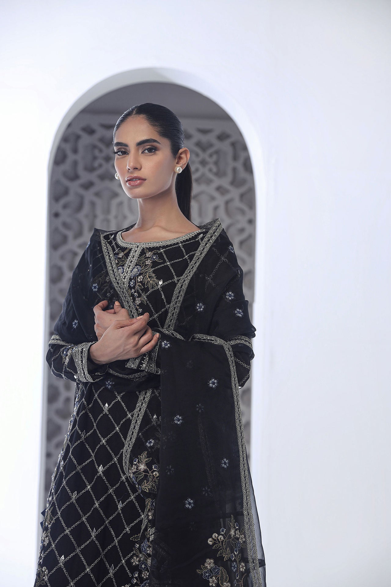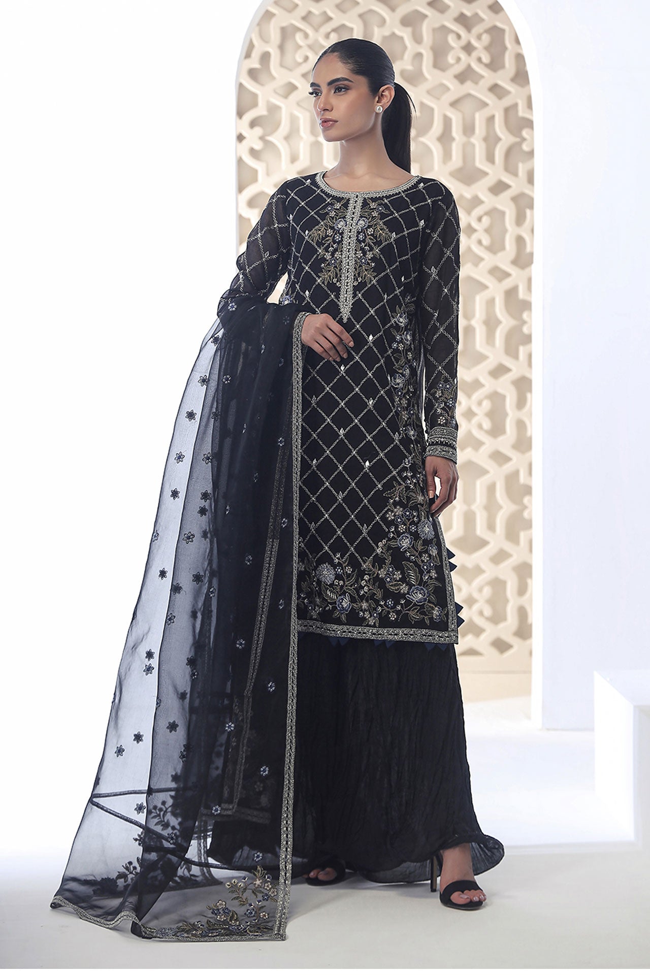 Crafted with exquisite details, this ensemble exudes sophistication and charm, making it a perfect choice for any special occasion. Explore the art of luxurious fashion with Dhanak..