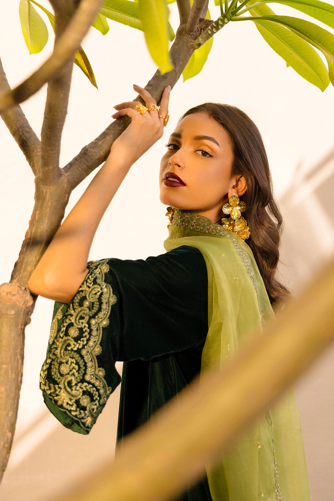 Canvassed in bold green hues on soft velvet fabric, this ensemble features a beautifully embroidered kurta showcasing intricate designs, adding a touch of luxury to your wardrobe. The plain straight trousers provide a chic contrast, allowing the kurta to take center stage while ensuring a comfortable fit. Perfect for festive occasions or evening events, this outfit is a timeless choice for any stylish occasion.