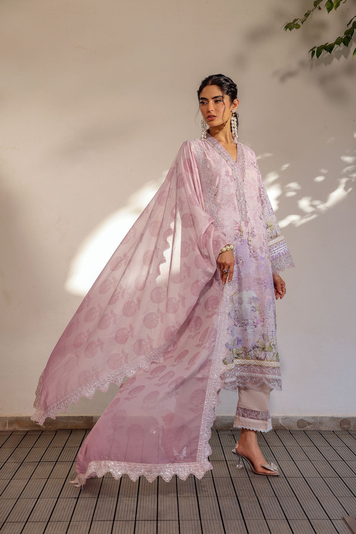 This design from Dhanak’s Silk collection exudes elegance and charm. The kurta is accented with intricate embroidered laces on the shirt and sleeves, creating a delicate, refined look. The highlight of the design is the stunning pearl embellishment around the neckline, adding a touch of timeless sophistication. Complete with a matching straight trouser, this luxurious ensemble is perfect for formal events or festive occasions, crafted to make a lasting impression with its graceful detailing and beautiful craftsmanship.