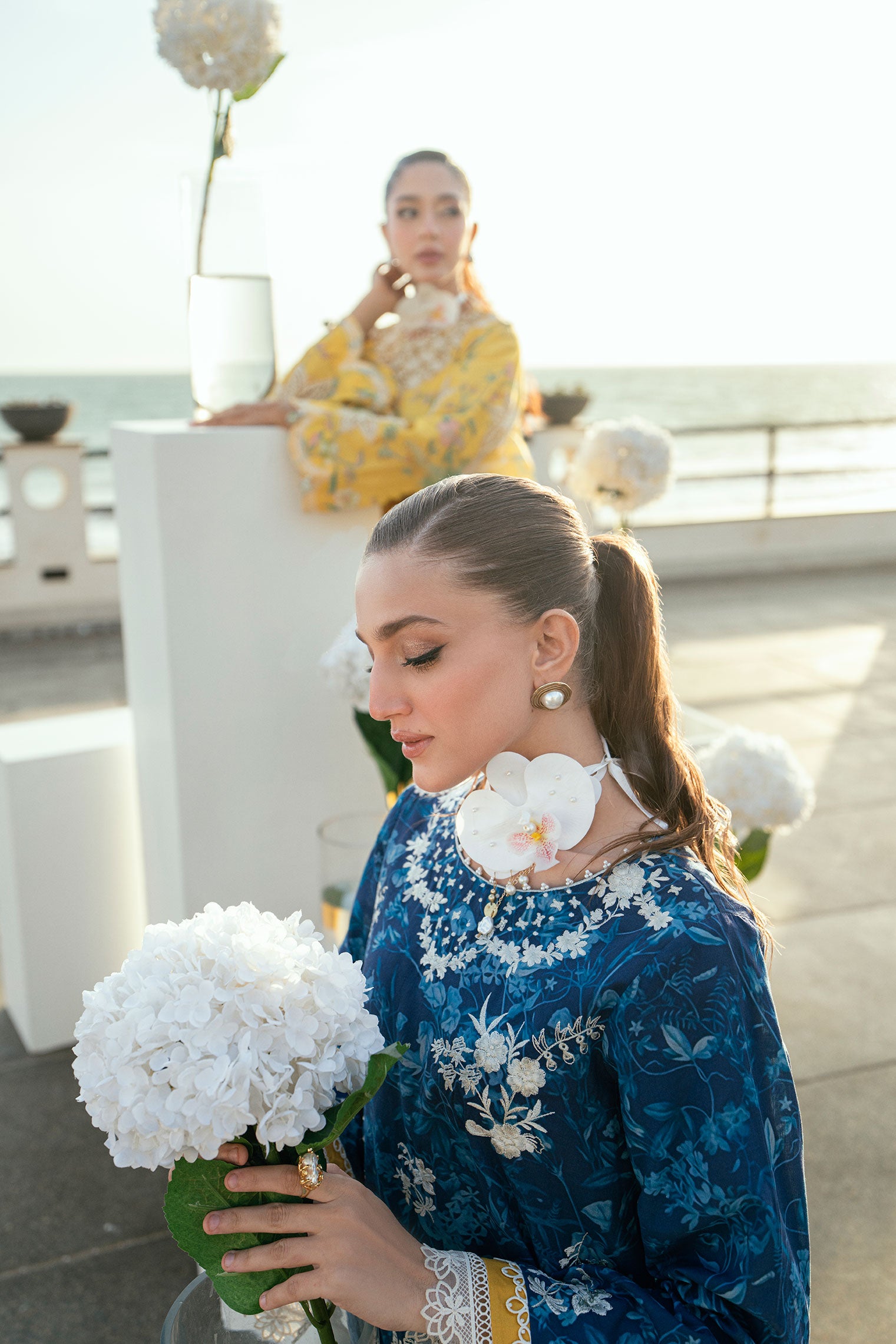 A must-have two-piece lawn ensemble for the season, featuring a striking printed shirt with delicate embroidery, perfectly paired with matching bottoms for a flawless Ramadan soirée look.