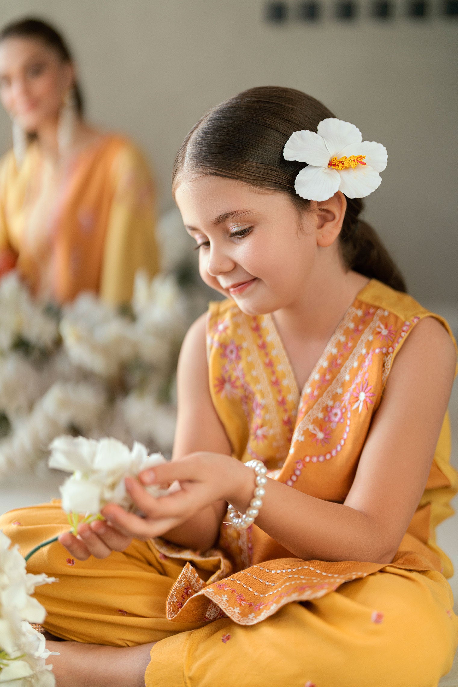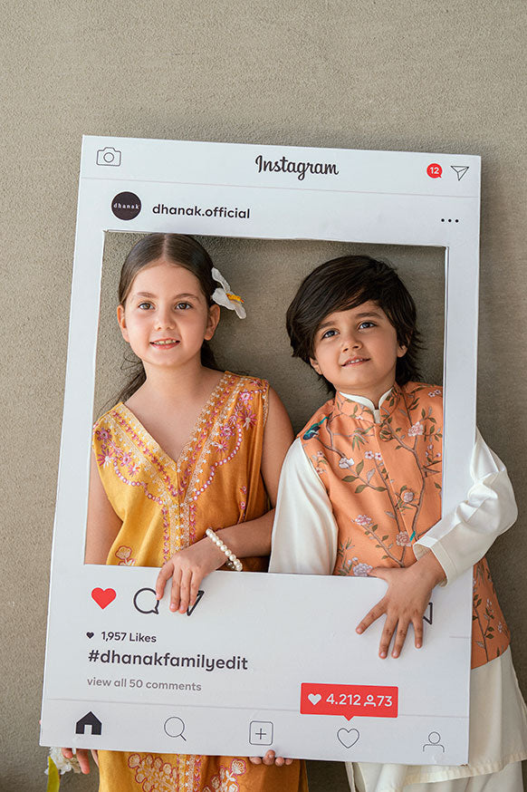 Featuring delicate details this two-piece ensemble is the must-have for Eid. The graceful silhouette of the kurta complements the tailored trousers, ensuring both style and ease of movement for your little one during your festivities.